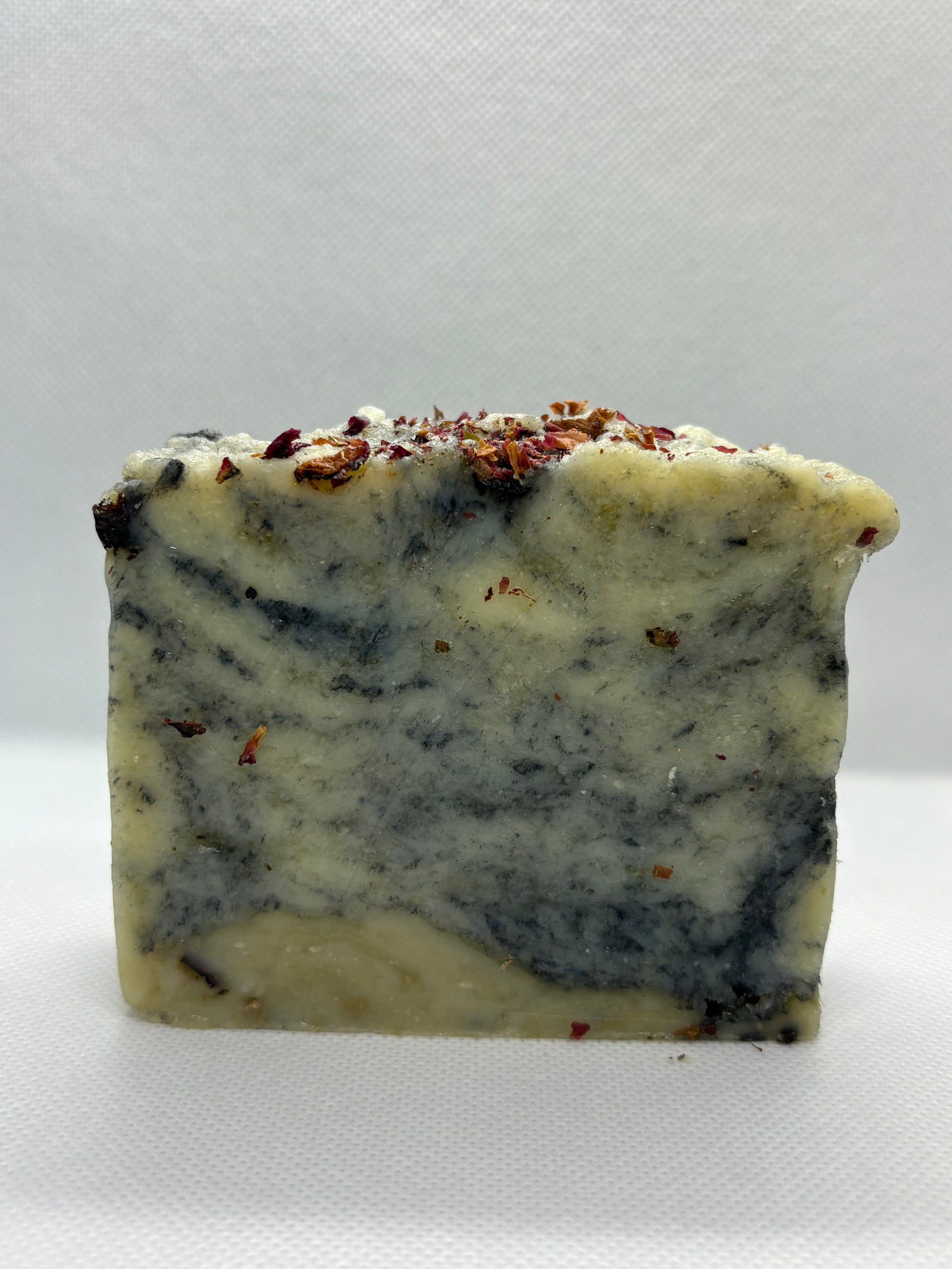 Let your senses bloom with our Lavender Rose Soap — a beautifully balanced bar that blends the calming aroma of lavender with the soft, romantic notes of rose. Made with charcoal and benitoite clay. This handcrafted soap leaves your skin feeling silky smooth and delicately scented. Each bar is enriched with natural ingredients that cleanse without stripping moisture, while the soothing floral scent turns every shower into a spa-like escape. Perfect for sensitive skin and anyone who craves a touch of timeless elegance in their daily routine.